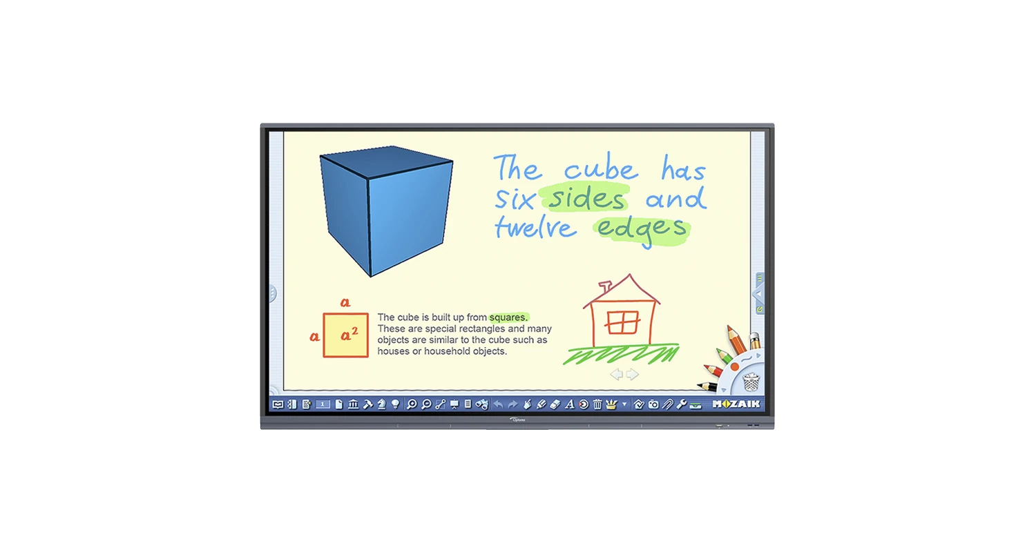 Créez des présentations animées et enrichissez-les de vidéos et d'animations 3D. L'outil de dessin visuel est doté d'une interface utilisateur intuitive qui permet aux élèves les plus jeunes de dessiner de manière ludique, mais également de réaliser facilement des dessins mathématiques précis grâce aux règles, au rapporteur et au compas intégrés.