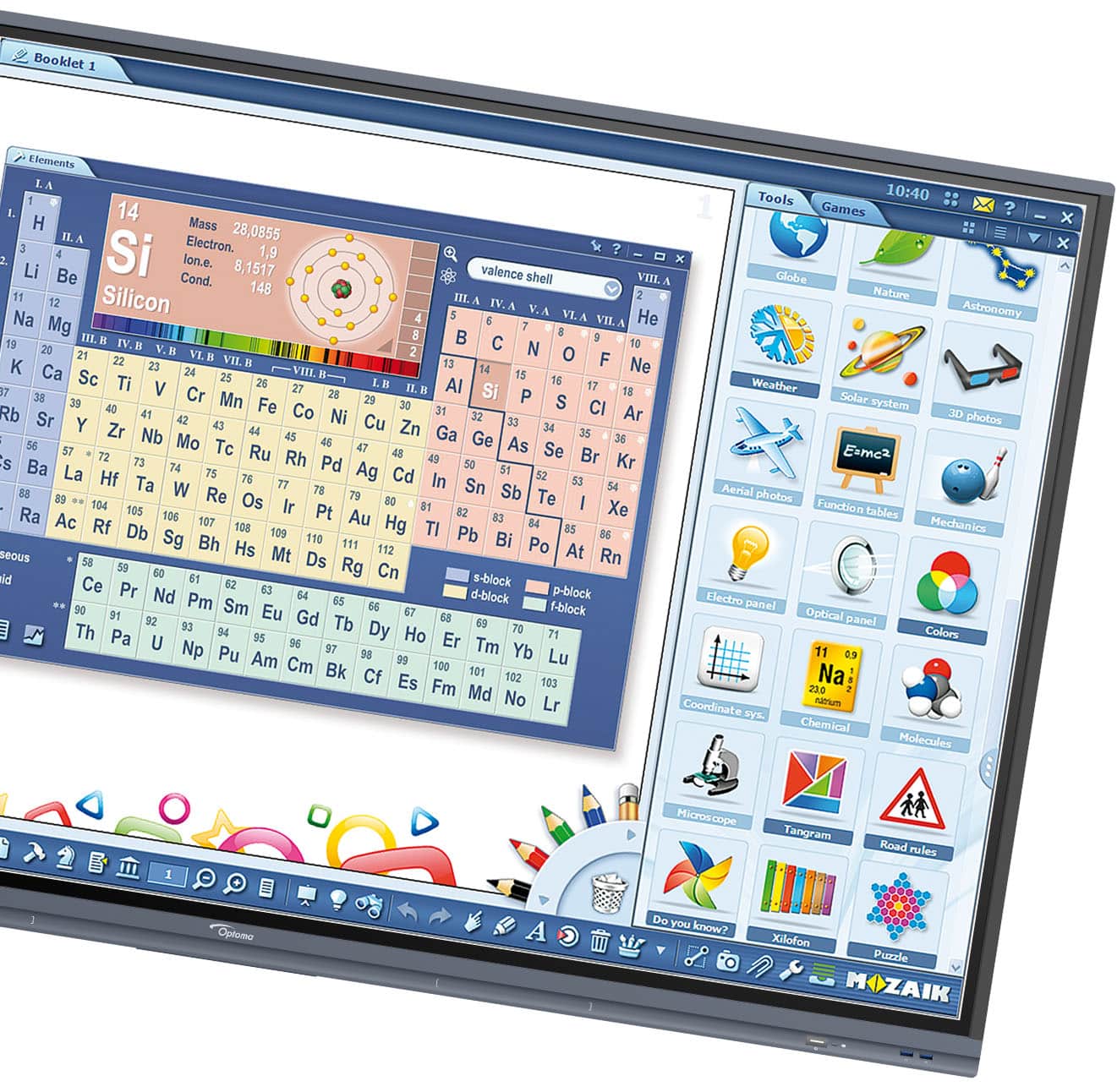 Abonnement gratuit d'un an au logiciel éducatif mozaBook avec votre écran interactif Optoma**.