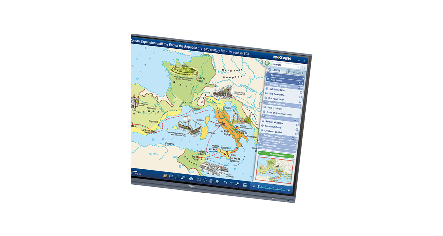 mozaMap propose des atlas interactifs qui élargissent la gamme d'outils disponibles pour les enseignants d'histoire et de géographie. Préparez vos cours et enseignez efficacement en utilisant et en personnalisant différents types de cartes et les éléments qu'elles contiennent.