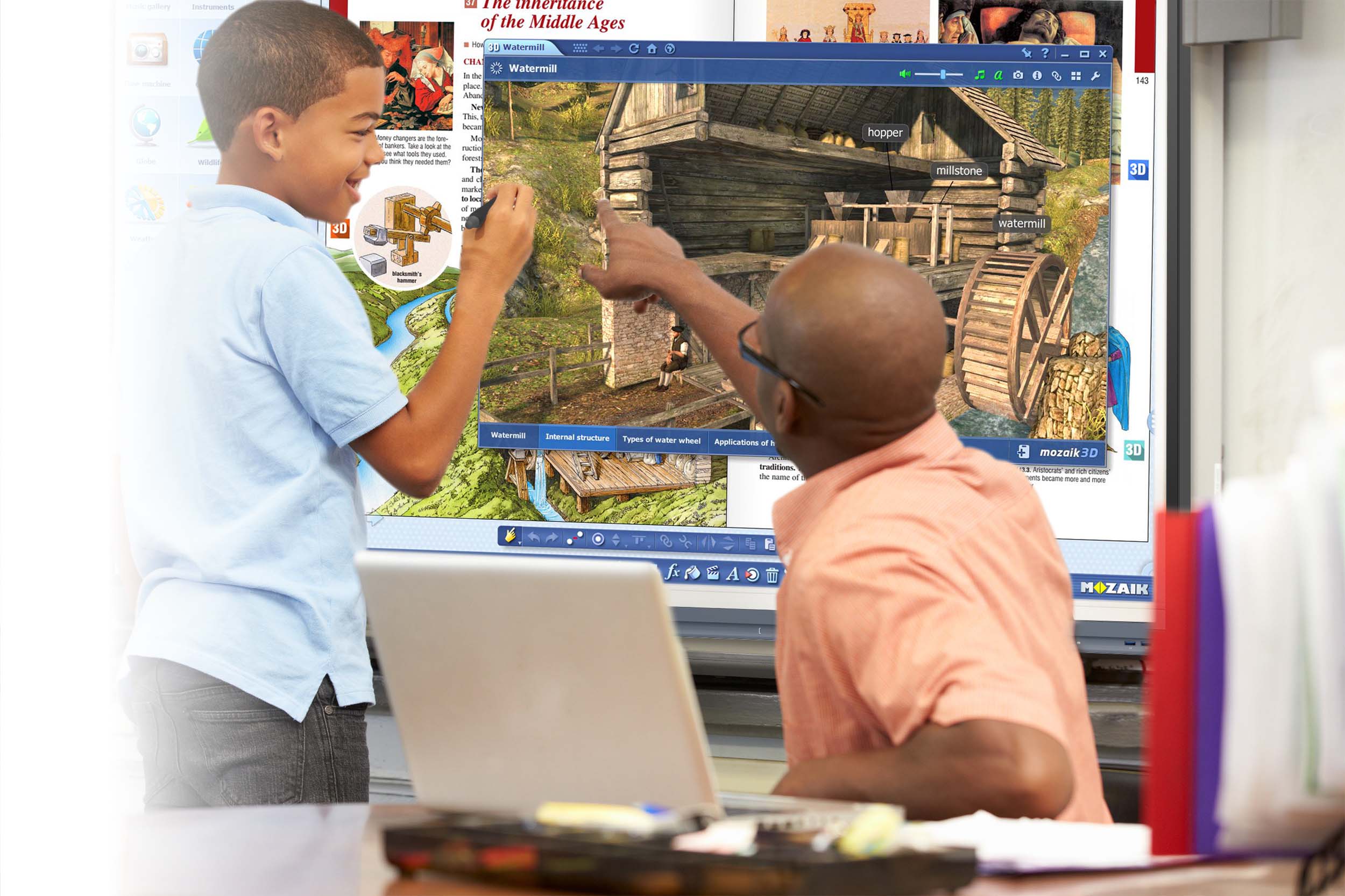 Lorsqu'il est utilisé avec notre écran numérique interactif, vous pouvez interagir avec vos manuels numériques d'une toute nouvelle manière, en utilisant le toucher, les gestes et même les commandes vocales pour naviguer dans votre contenu.