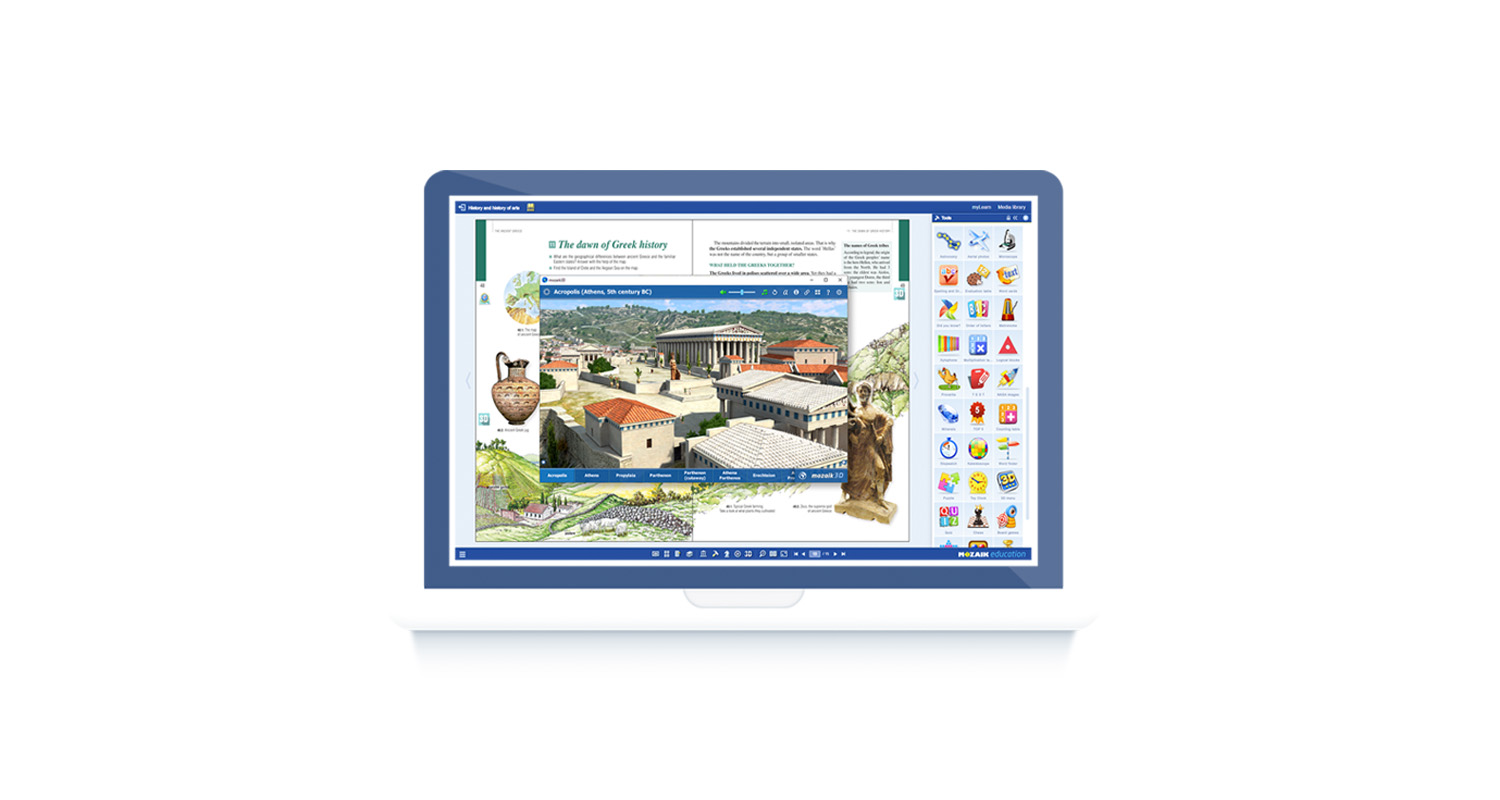 Les élèves peuvent accéder aux livres numériques et à tout le contenu interactif utilisé pendant les cours sur mozaWeb. Ils peuvent facilement accéder à de nombreuses connaissances à l'aide d'animations 3D, de vidéos, d'exercices interactifs et de leçons numériques. De plus, ils peuvent s'exercer de manière ludique grâce à des outils et des jeux expérimentaux et de développement des compétences.